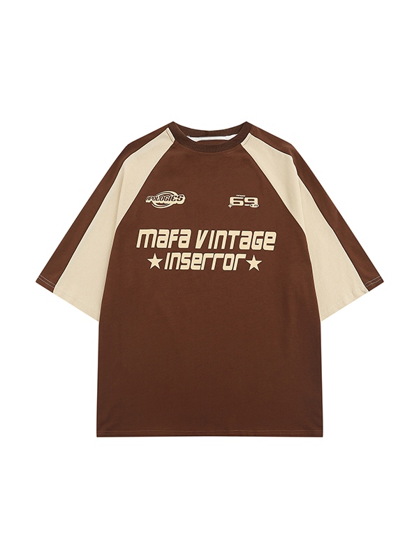 Kurzarm-Raglan-T-Shirt mit Farbblock-Buchstabendruck für Herren