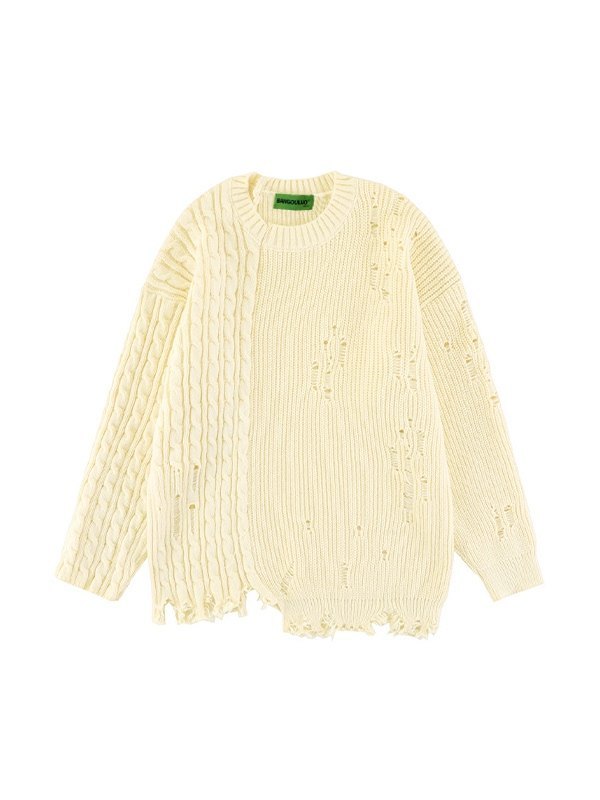 Zopfmuster-Pullover im Distressed-Stil für Herren