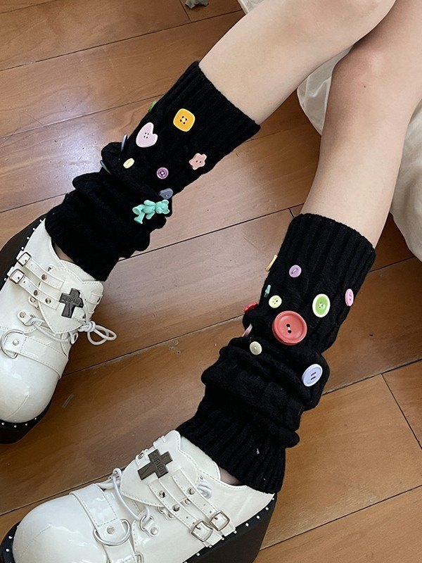 Knopfverzierter Zopfmuster-Beinwärmer