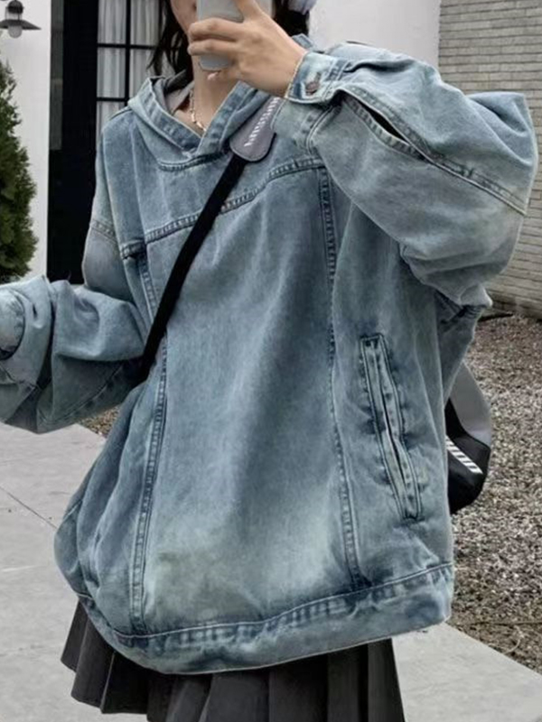 Lockeres Sweatshirt mit Kapuze aus Denim-Imitat