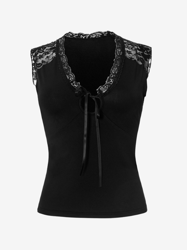 Tanktop mit Patchwork-Ausschnitt und Spitze