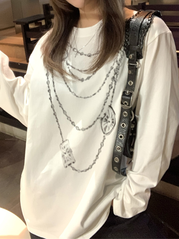 Schulterfreies Patchwork-Langarm-T-Shirt mit unregelmäßigem Saum