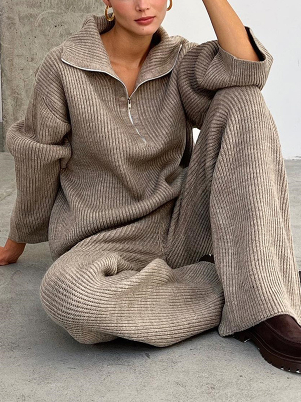 Lässiger gestreifter Zweiteiler mit langen Ärmeln